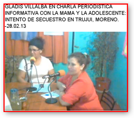 INTENTARON SECUESTRAR A JOVENCITA MENOR DE EDAD EN TRUJUI, MORENO. VIDEO: GLADIS VILLALBA EN CHARLA PERIODISTICA INFORMATIVA CON LA MAMA Y LA ADOLESCENTE-que por su edad no sale en camara-. YA SON VARIOS LOS CASOS EN POCOS MESES. LOCUCION: Daniel Grasso.- Radio Comunitaria Fm ciudad de Trujui 105.9 mhz